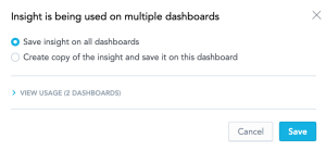 • If the insight is included on multiple dashboards and you want to update it on all dashboards, select Save insight on all dashboards and click Save .