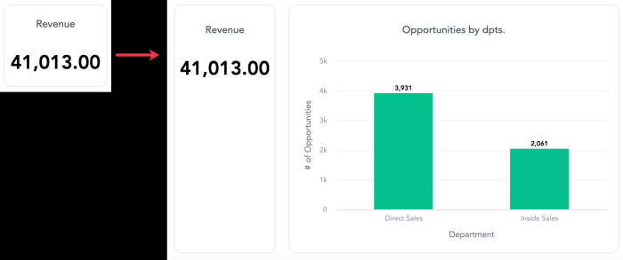 2. The row height is automatically adjusted to the height of the highest widget in the row. For example, if you have a headline widget and add a column chart, the height of the headline adjusts to the height of the column chart.