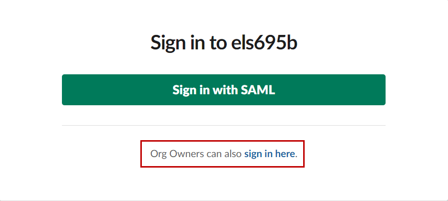 3. On the Slack portal sign in page, enter your Enterprise Grid URL. For example, if the enterprise URL is https://acmeorg.enterprise.slack.com, enter acmeorg.enterprise.
